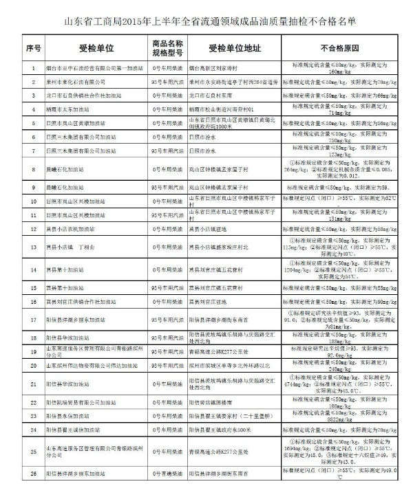 山东抽检成品油质量 26家单位油品不合格(附名单)