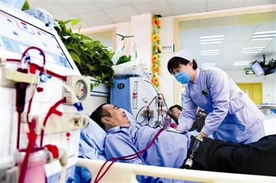 4月7日,在山东夏津县人民医院,患者在做血液透析治疗。
