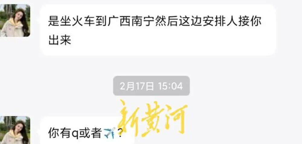 还有网友发帖晒出私信对话,提醒其他人谨防上当受骗。网友“猛男少女心”发布的跟“HR包总”的聊天截图显示,“HR包总”称“到了就给你报销(路费)”“走小路,路费我们出”“我们公司不打人,不收手机,没有人监视,每天都可以跟家里人视频、打电话……”“猛男少女心”回复说:“走南宁去越南,到了越南别说路费了,啥都没了。”“HR包总”则直接说:“给你惯的,想来我们公司的多了去了,明天就走五个要出发,缺你这一个啊……”