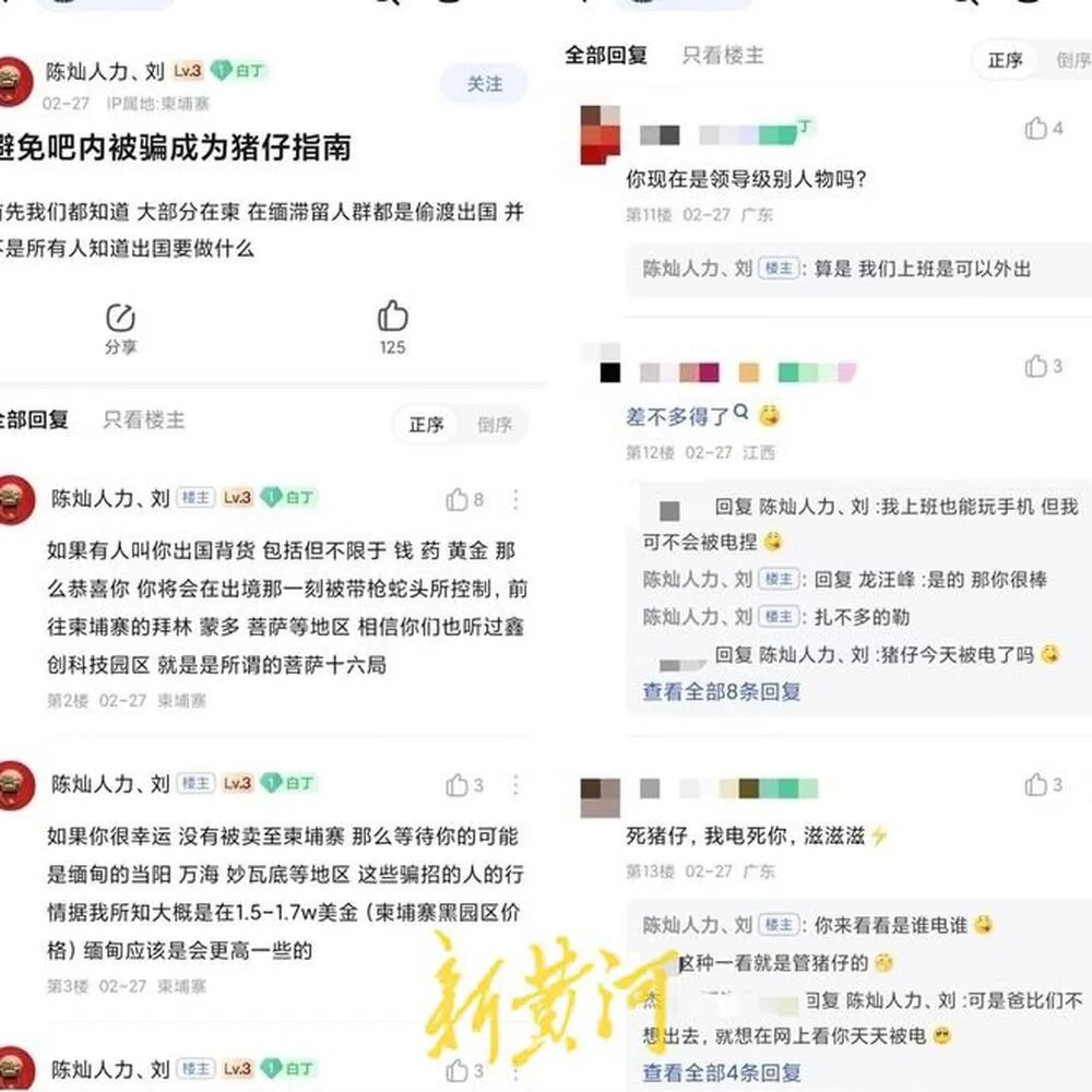 一名IP显示在柬埔寨的用户“陈灿人力、刘”发帖称:“首先我们都知道,大部分在柬在缅滞留人群都是偷渡出国,并不是所有人知道出国要做什么。”他还提到“吧内所谓的殴打、无故电击确实不存在”。有网友留言称“你现在是领导级别人物吗”?他回复称“算是,我们上班可以外出”。