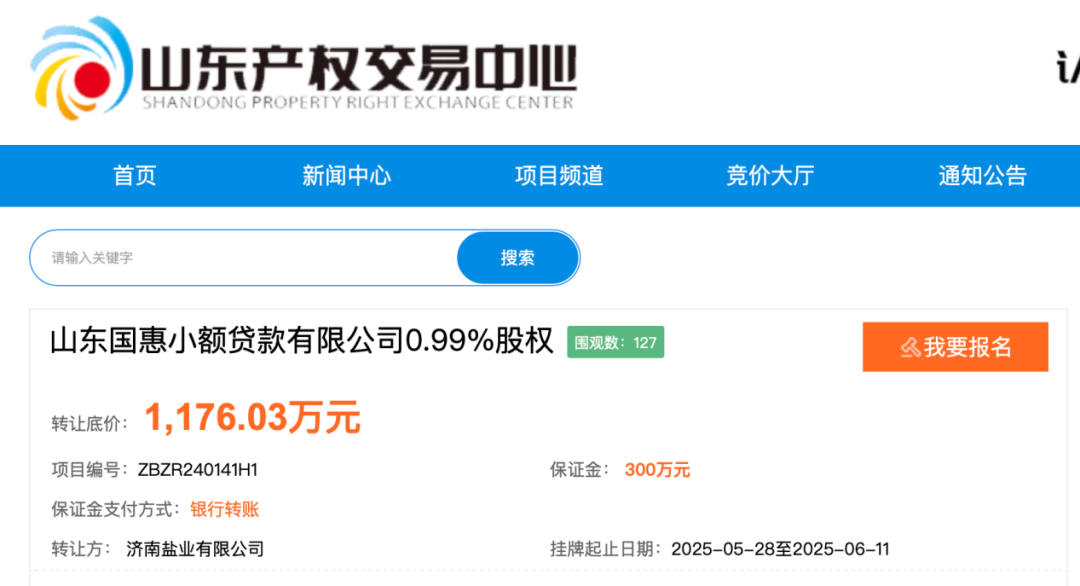 山东5市盐业公司欲退出国惠小贷,挂牌转让3500万股