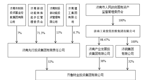 公告显示,股权调整前,齐鲁财金由济南市国资委全资控股;调整后,济南产发集团将作为控股股东持有齐鲁财金36%股权,济钢集团、济南先投集团分别持股32%,对齐鲁财金仅享有资产收益权,其他股东权利由济南产发集团代为行使。