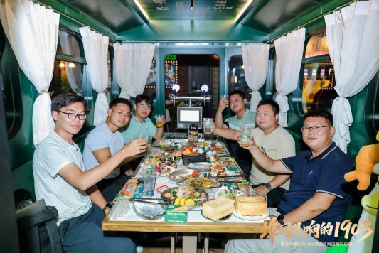 原浆、纯生、白啤、黑啤、IPA、皮尔森……刚刚下线的新鲜啤酒,全程冷链运输至餐桌前,或醇厚、或爽口,或果香四溢、或苦爽回甘,青岛啤酒全系产品都能在青岛啤酒1903 MIX 酒馆痛快畅饮。“很新鲜,像是乘坐了一辆啤酒列车,这里不光有各色啤酒,还有啤酒茶饮、烘焙、创意菜。” 青岛啤酒1903 MIX 酒馆新意涌动,以啤酒为媒延伸出多元的消费体验场景。