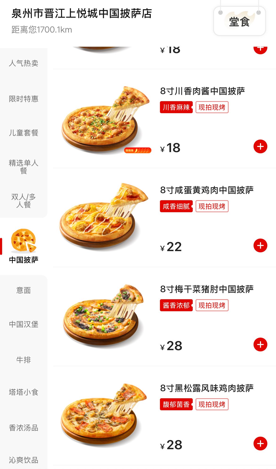 塔斯汀中国披萨菜单 图片来源:塔斯汀小程序截图