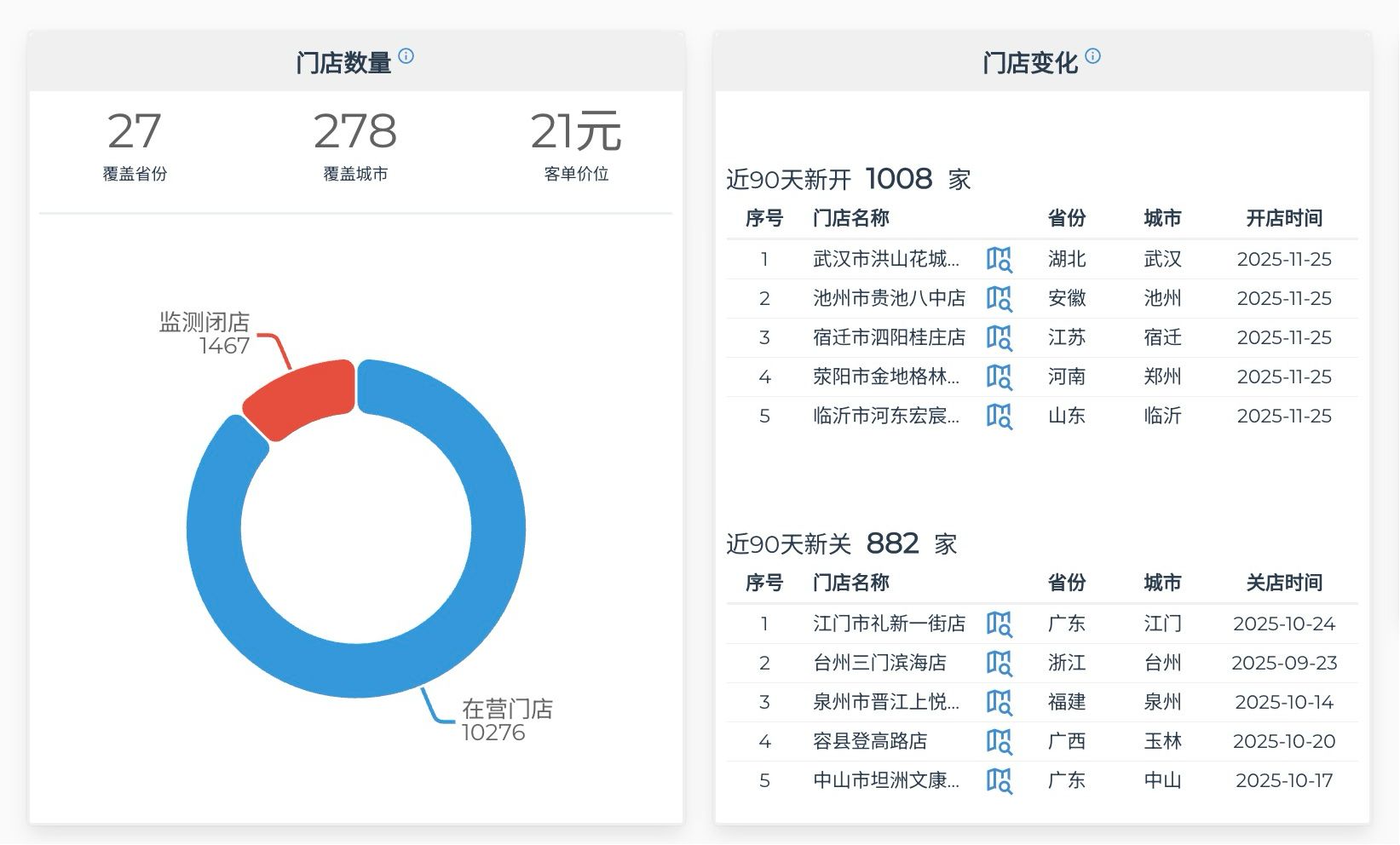 近90天新开约1000家门店,同期关闭超800家——行业监测平台的最新数据表明这位新晋“万店俱乐部”成员在狂奔之后,正面临着前所未有的复杂考验。