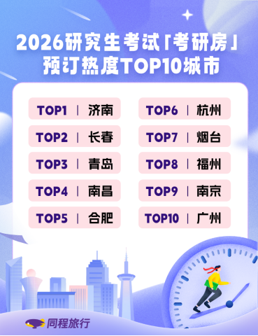同程旅行:2026“考研房”迎预订高峰,济南预订热度居首