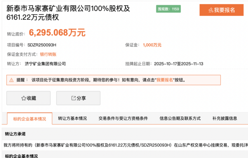 近日,新泰市马家寨矿业有限公司(简称“马家寨矿业”)100%股权及6161 22万元债权项目在山东产权交易中心挂牌转让,转让方为济宁能源发展集团有限公司(简称“济宁能源”)下属济宁矿业集团有限公司(下