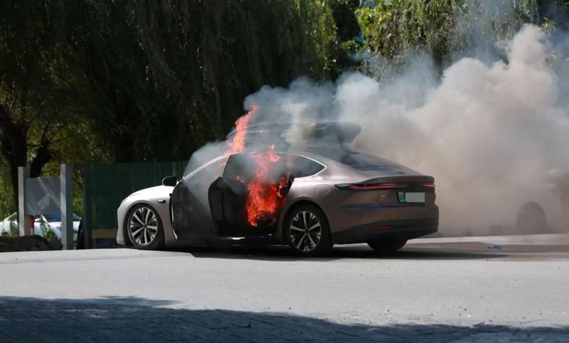 一蔚来轿车在大理一景区外起火,一家四口撤离及时无伤亡