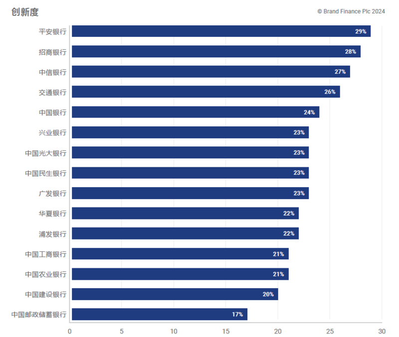 《Brand Finance 2024年中国银行业品牌调研报告》银行创新度排名