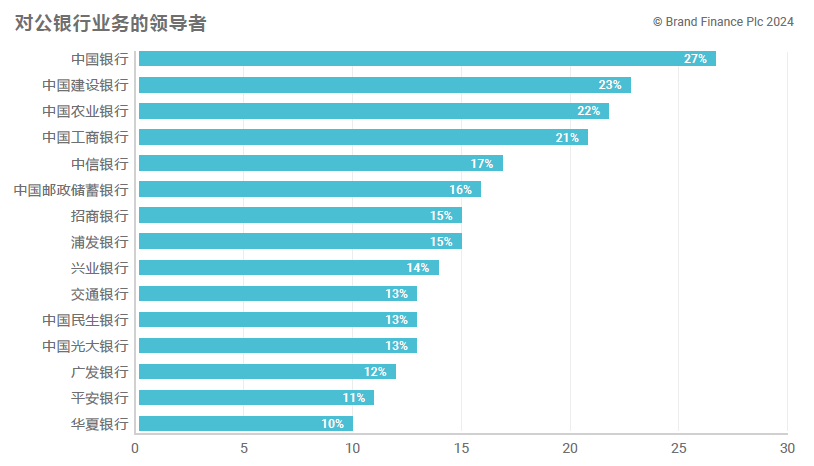 《Brand Finance 2024年中国银行业品牌调研报告》对公银行业务排名