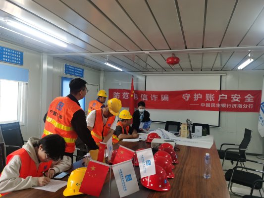 为切实提升建筑工人群体防范电信网络诈骗的意识和能力,守护劳动者财产安全,民生银行济南槐荫支行于4月11日走进某建筑工地,开展“反