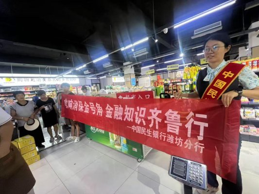 为提升社会公众的金融素养和风险防范意识,2025年8月8日,民生银行潍坊高新支行联合附近超市,开展了一场别开生面的金融知识普及宣传活