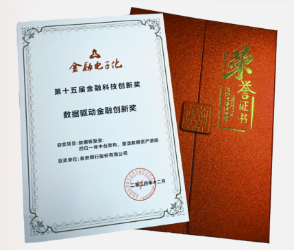 泰安银行数据中台项目荣获“数据驱动金融创新奖”