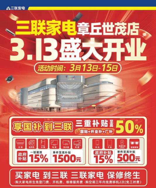 三联家电章丘世茂店于3月13日盛大开业。