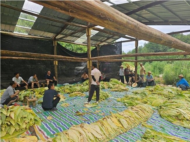 (巴东县辖区烟农交流白肋烟晾制经验,田锋供图)