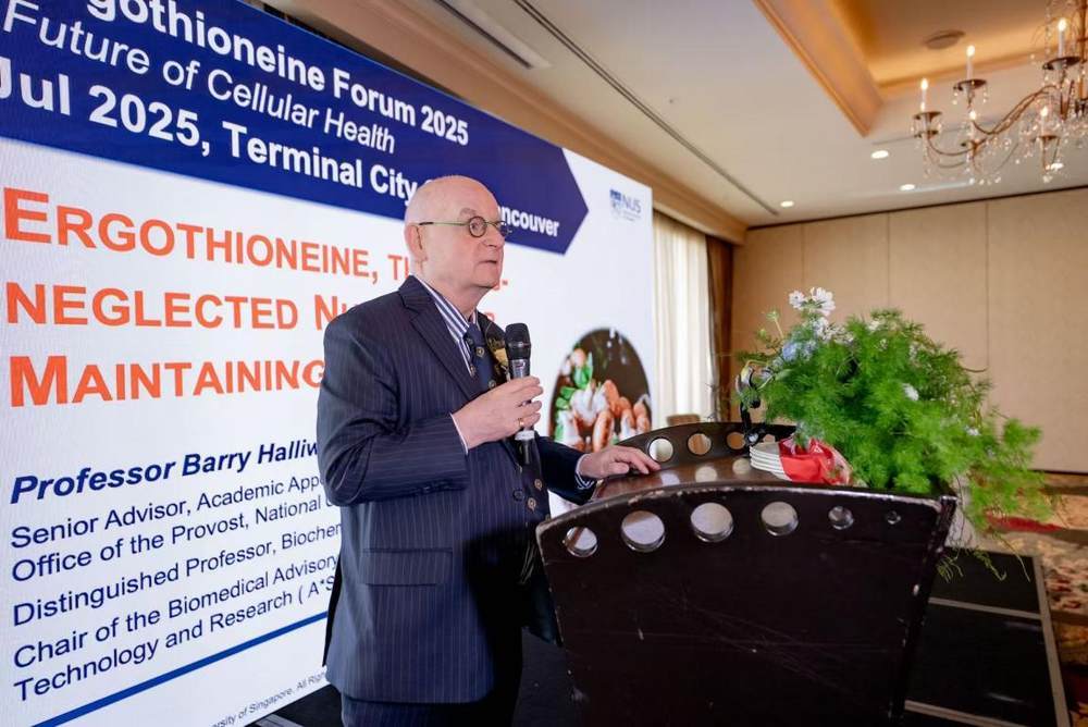 主办方 Lux Nutrition 特别邀请到专注在麦角硫因上做学术和临床研究的,并在世界排名第八位的新加坡国立大学任职教授的 Professor Barry Halliwell,亲临介绍并分享多年研究麦角硫因对人体细胞修复的成果。 Barry Halliwell 教授作为全球麦角硫因研究的开拓者与权威,系统性揭示了麦角硫因在抵御氧化应激和细胞损伤中的核心作用,并推动了其在营养学、医学及健康老龄化研究中的全球关注。在本次演讲中,他详细解析了麦角硫因在维护人体健康、预防慢性疾病方面的潜在价值。