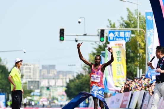 马拉松男子组第一名冲线