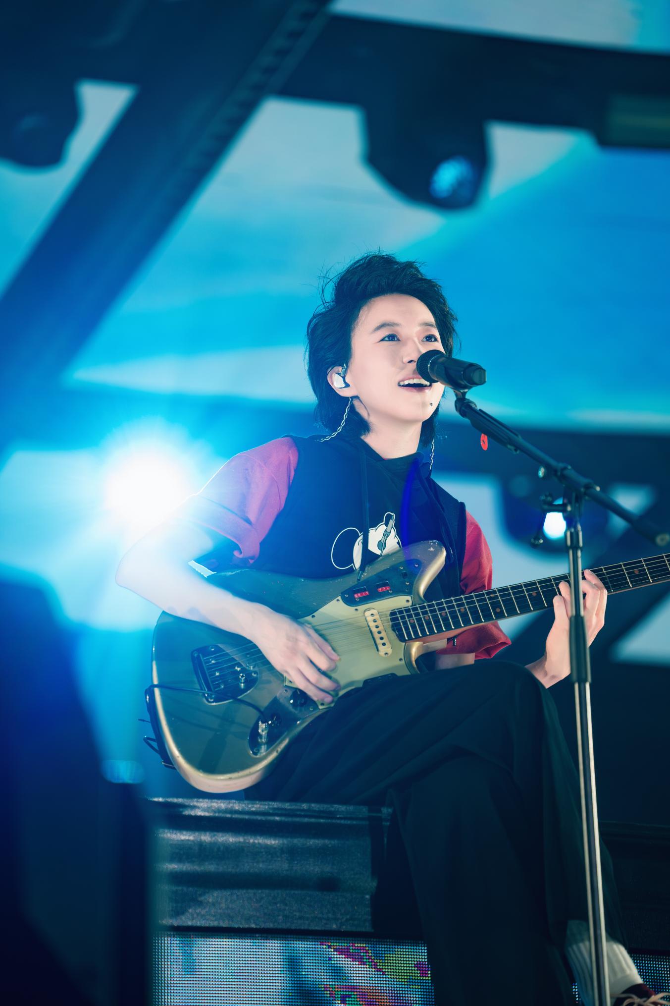 前半段,窦靖童将听众沉浸式地带入自己的音乐世界,追光灯下,她徘徊在舞台两侧,感受与歌迷之间逐渐缩短的距离。当副歌响起,声音骤然增强的那一刻,乐迷们仿佛听见了她内心的呐喊,看见了她内心世界的外化。