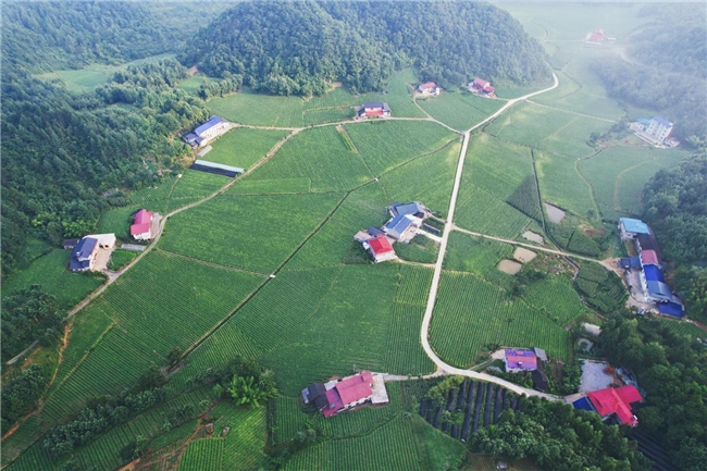 在绵延不绝的大山里,汇聚在一起雾霭与烟火随着阳光的洒落逐渐散去,一幅欣欣向荣的乡村发展新画卷徐徐展开,遍山葱绿的叶片中,正散发着无尽的希望与期盼。(刘芳禧、覃经纬)
