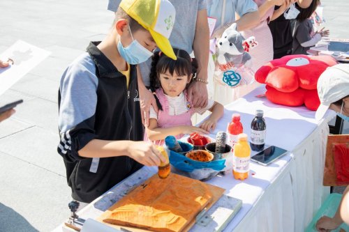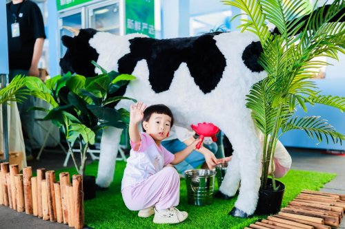 在新希望乳品展位前,孩子们体验挤牛奶,在实验中收获牛奶从牧场到餐桌的杀菌奥秘;在灯塔味业展台,酱油在孩子们手中成为不同浓度的“酱油溶液”,亲自“调配”自己的专属酱油;在蔚来汽车展区,男孩们争抢成为汽车工程师,“拆解”观察新能源零部件,探索科技如何助力绿色出行……