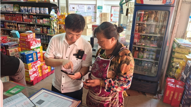 “您可以在赣服通上找到烟草相关服务,选择延续申请,然后按照提示一步步上传营业执照、许可证、身份证等材料,提交就能完成操作。”稽查员曾德聪在示范时耐心地解释道,并细致地指导雷玉兰店老板每个步骤需要注意的地方。在雷老板清楚操作流程后,迅速完成了许可证延续工作,表示“现在有了‘小澄码上办’,我在上面提问我的问题,很快就会得到解答,感觉服务更加贴心了。”