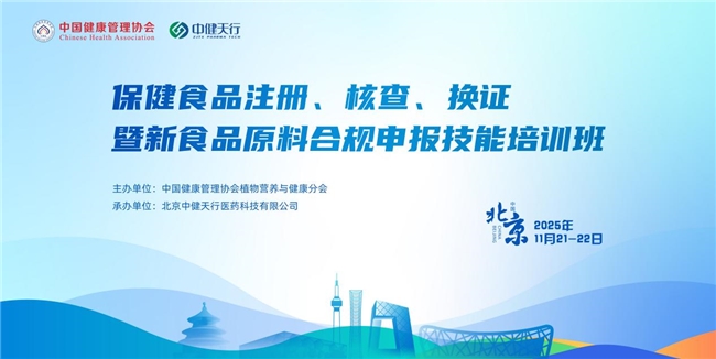 当前,我国保健食品与新食品原料行业正处于法规标准体系完善关键期,为切实破解企业在政策落地过程中的实操难题,助力从业者精准把握政策要点,2025年11月21日-22日,中国健康管理协会植物营养与健康分会将在北京举办第一期“保健食品注册、核查、换证暨新食品原料合规申报技能培训班”,本次培训由北京中健天行医药科技有限公司承办,有意向参会单位及个人可与主办方或承办方对接沟通。
