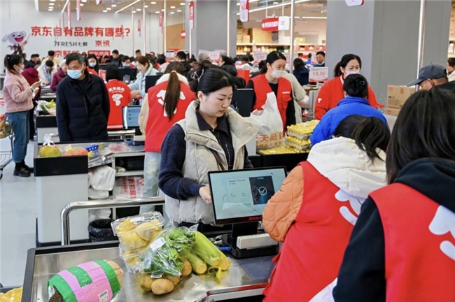 11月26日,京东折扣超市宿豫庐山城市之家店正式开业。作为京东在宿迁布局的关键一环,该店开业不仅标志着京东折扣超市完成宿迁“三县两区”全域覆盖,更以单日近5万人次的火爆客流,再度点燃当地消费热情。开业当天,尽管宿迁天气有些寒冷,仍难掩消费者的购物热忱:清晨,门店外便排起蜿蜒长队等候开门;开店后,货架前人流如织,多款热门商品被抢购一空,门店补货人员推着货箱穿梭于通道间,热闹场景与此前宿迁“四店同开”时的盛况如出一辙,成为宿豫区当之无愧的消费新地标。