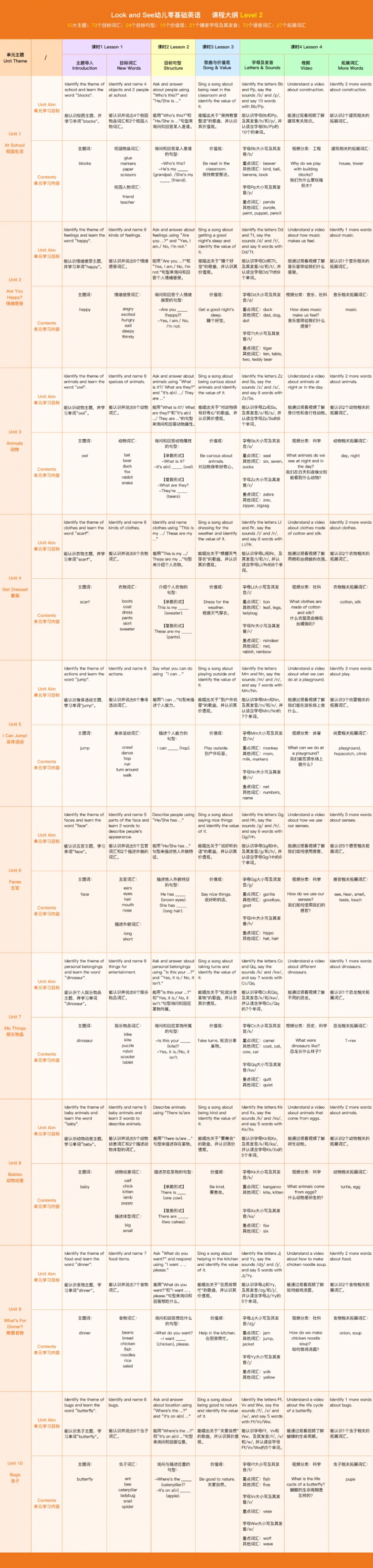 《Look and See》课程共3个级别,每级别围绕10大日常生活主题展开,级别难度循序上升,帮0基础学员打好英语基底,无缝衔接语言能力的进阶之路。