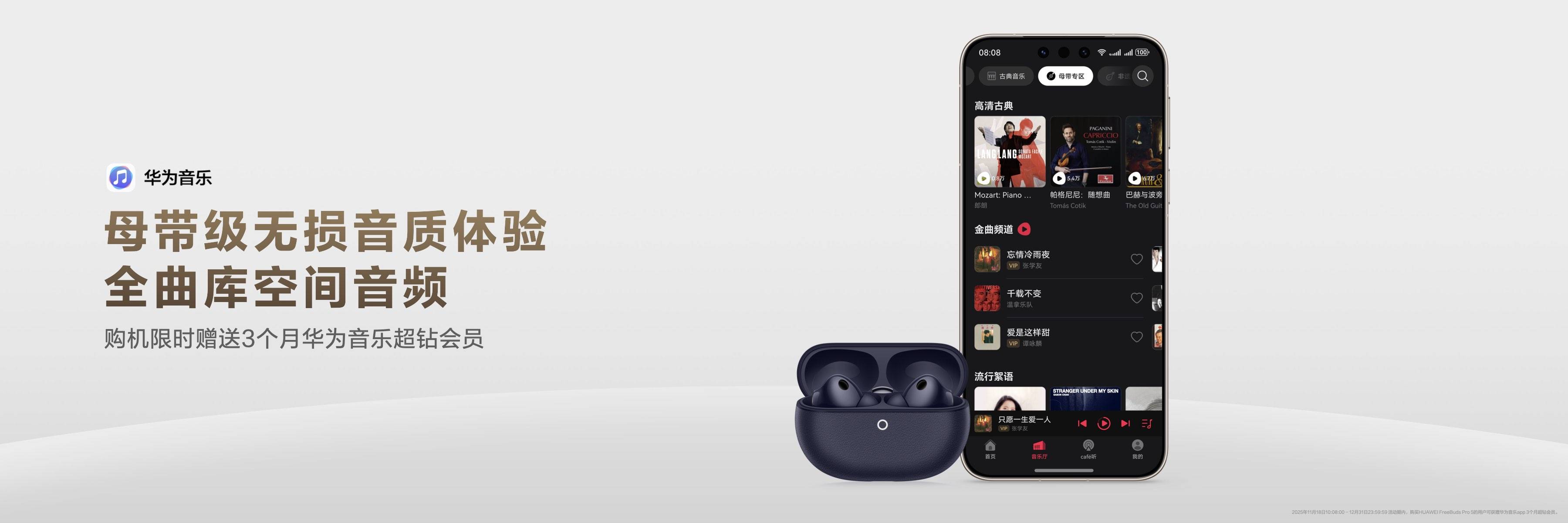 购买华为FreeBuds Pro 5悦彰耳机的用户还能享受特别福利:随箱赠送1个月华为音乐超钻会员;首销活动期参与华为音乐会员中心活动,可再领取3个月,累计到手4个月会员权益。搭配Mate 80系列新机,体验华为音乐全曲库超高清音频细腻音质、空间音频环绕声场。更贴心的是,会员权益支持鸿蒙多设备共享,手机、平板、耳机无缝切换,真正实现“全场景畅听无界”。