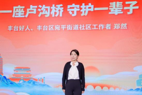 “少年强则国强” 的铿锵誓言在武术表演中得以生动诠释。丰台区少年宫武术班的学员们以刚劲有力的拳脚、朝气蓬勃的风貌展演《金戈少年・爱国魂》,每一招式都凝聚着对家国安宁的守护、对民族气节的颂扬,展现了新时代青少年传承爱国精神的责任担当。随后,“丰台好人”、宛平街道社区工作者郑然通过情景式主题宣讲《一座卢沟桥 守护一辈子》,讲述了“时代楷模”“北京榜样”郑福来老人数十年义务守桥、宣讲历史的坚守,以及自己作为“ 守桥人”后代接过历史接力棒的初心,让红色记忆在代代相传中永不褪色。