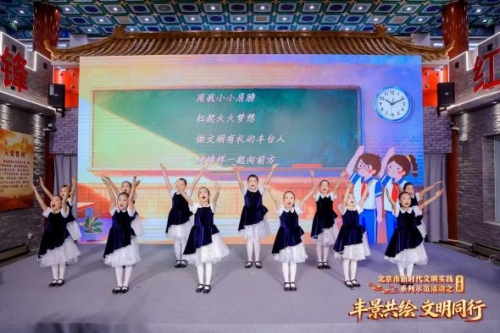 最后,丰台区少年宫小星星合唱团带来原创歌曲《文明话家园》,清新活泼的童谣将邻里友善、社区共治等文明理念融入旋律,让文明之风随童声浸润人心。