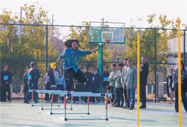 网球中心举行的全区农民趣味运动会总决赛,将“村味”与“趣味”结合得淋漓尽致。大家挑战《奔跑吧》综艺同款游戏,在“登顶药王山”比赛中队员脚踩指压板跳跃前进,通过趣味游戏“采集”金线莲等衢江特色中药材,过程笑料百出。在“‘衢’味你画我猜”环节,猜题者绞尽脑汁,猜测衢江村名,答案南辕北辙,现场充满欢声笑语。“‘衢’味障碍赛”的项目直接将全场气氛推向高潮,队员们跨越模拟“村运栏”、绕行“甘蔗林”完成插秧任务,充分展现新时代农民矫健身手和蓬勃朝气。