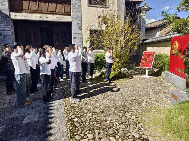 在施滉烈士雕像前,全体党员整齐肃立、默哀致敬,深切缅怀革命先烈的不朽功绩。随后,大家面向鲜红党旗庄严宣誓:“我志愿加入中国共产党,拥护党的纲领,遵守党的章程……”铿锵有力的誓言在纪念馆上空久久回荡,既是对革命先辈的深情告慰,更彰显了新时代党员传承红色基因、践行初心使命的坚定决心。通过重温入党誓词,党员干部进一步强化了党性意识,凝聚起“以高质量党建引领保障高质量发展”的共识,为滇西医疗中心项目建设注入强大精神动能。