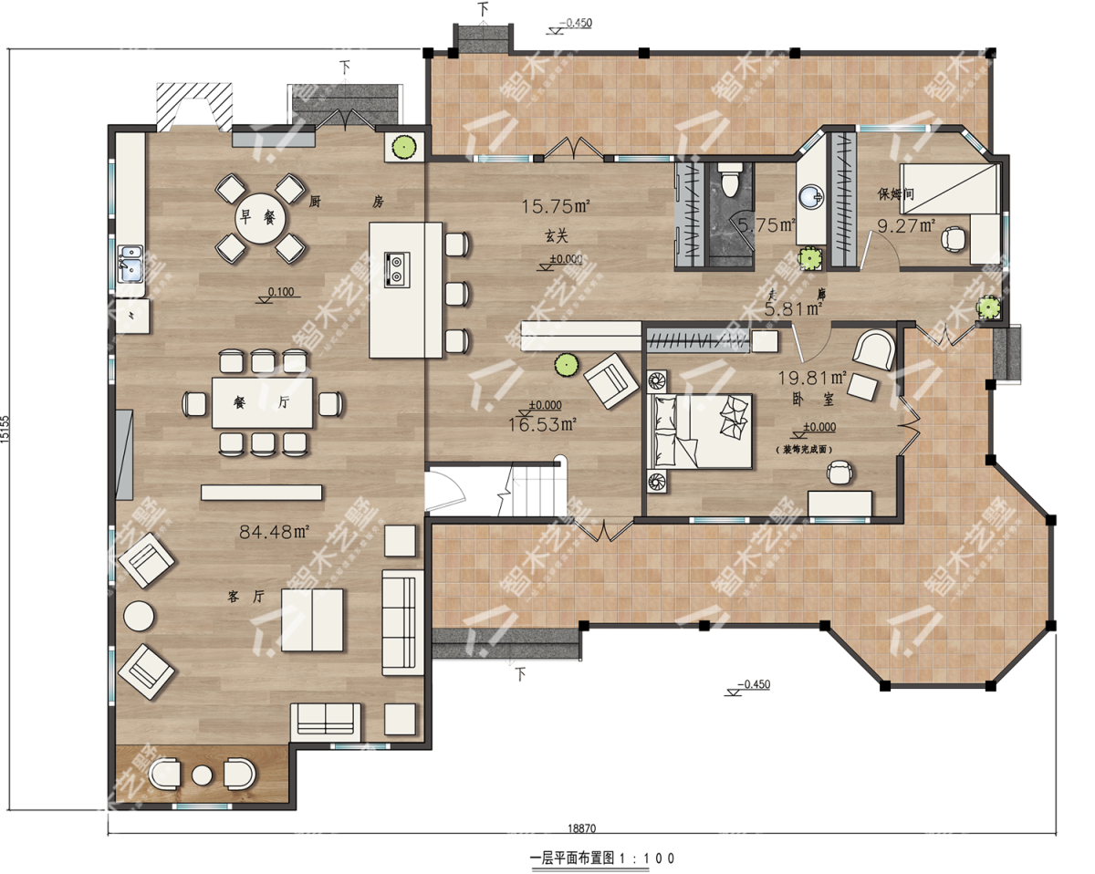 进深×面宽:18.8×15.1m