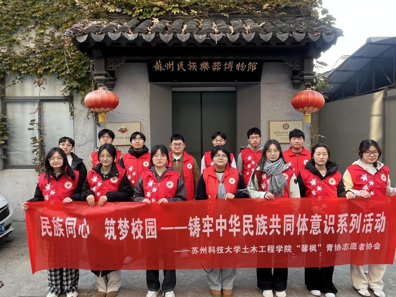 为深化活动内涵,“馨枫”青协组织前往苏州市民族乐器博物馆及民族乐器一厂进行实践研学。在志愿者的引领下,同学们不仅亲身体验各民族乐器,更深入了解了其制作工艺所承载的融合智慧。这场跨越物质与精神文化的探访,被视为一堂特殊的“行走的思政课”,铸牢中华民族共同体正如这些精巧乐器与宏伟建筑,是在历史长河中不断兼容并蓄、共生共荣的伟大创造。通过这一系列志愿宣讲与实践行动,“馨枫”青协有效传播了团结共生的理念,激励青年成为铸牢中华民族共同体意识的坚定践行者。