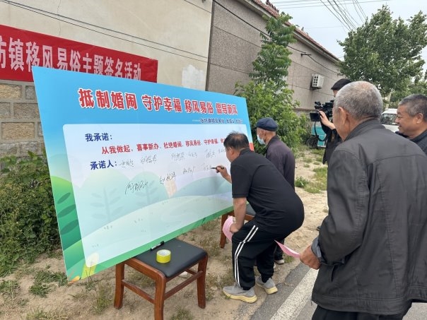以签名活动之“吸引力”引参与。张坊镇不断创新宣传形式,在集市等群众聚集的地方开展“我们的约定”移风易俗主题签名活动,以好奇、热闹的新鲜感吸引群众参与,主动融入移风易俗活动中,让移风易俗的理念深入人心。