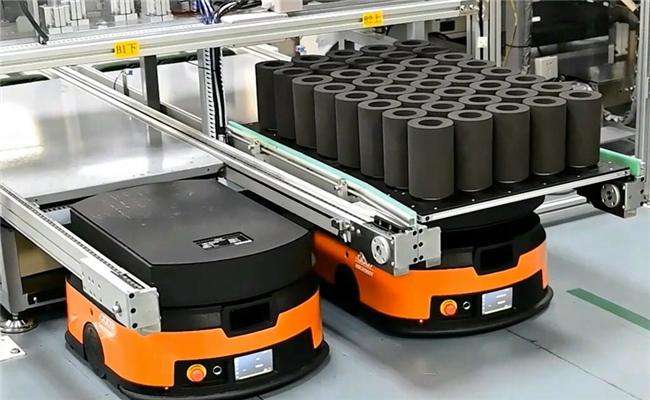 图说:安利广州生产基地生产线上的自动导引车