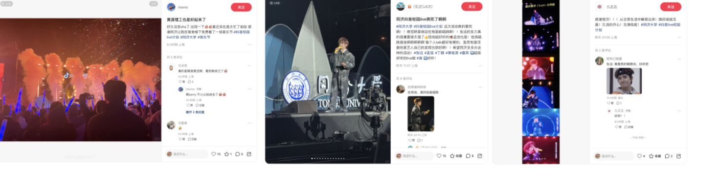 线下,学生的热情是最直接的反馈:“感谢阿济让我在宿舍楼下免费看了一场音乐节!”、“感谢我济!!!从日常生活中解救出来!跟好闺闺见面!久违的开心!充满电啦!”;线上,直播间的弹幕里“求全国巡回”的呼声不断刷屏,形成了另一重热烈的声浪。而这场对话的起点,还能追溯到品牌在社交平台的预热,无论是“恩恩请客”式的亲切邀约,还是“进群预约”的关系沉淀,都成功地将线下活动的吸引力,转化为了可触达、可运营的用户期待。