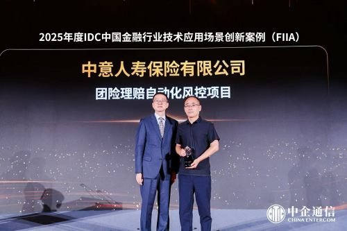 中意人寿荣获“2025年度IDC中国金融行业技术应用场景创新案例(FIIA)”奖项