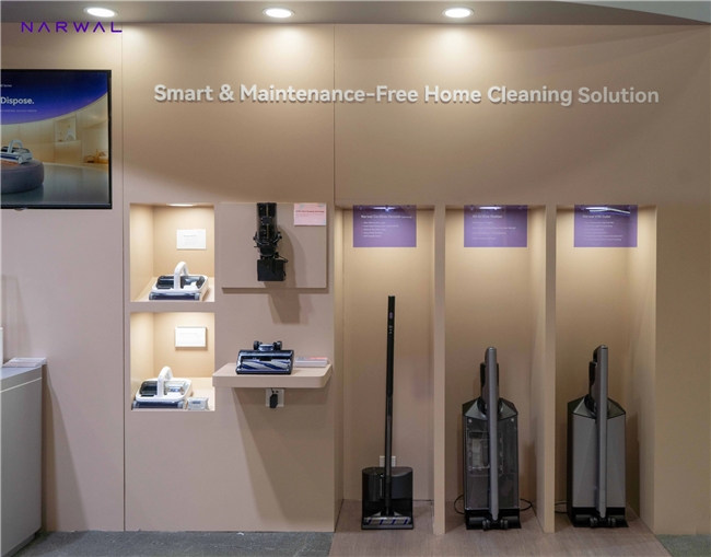 从手持品类来看,Narwal S30系列及上下水洗地机新品在内的三款洗地机集中亮相本届CES。其中,上下水洗地机新品是高端旗舰机型,搭载80℃恒温热活水洗地系统,能高效溶解地面顽污。同时,支持180°躺平以清洁低矮空间,且可连续工作70分钟,达到约500㎡的大面积清洁。在自清洁方面,新品拥有自动上下水基站,支持自动加水和自动排污,实现“无需换水,即取即用”的极致免维护体验。吸尘器方面,云鲸发布了Narwal V50 Cube和自集尘铅笔吸尘器两款新品,前者主打210AW强劲吸力和100天免维护;后者主打小巧强劲,配备140AW吸力,支持暗处照明和360°万向转动,更好清洁边角灰尘。此外,云鲸还带来U50(有线款)和U50 Pro(无线款)两款除螨仪,进一步满足母婴人群、养宠人群、易敏人群的精细化清洁需求。