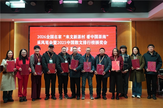 2026年1月12日至14日,《海外文摘》杂志社、《散文选刊.下半月》杂志社与信阳文新毛尖集团有限公司在河南信阳联合举办了“2025年度中国散文排行榜”颁奖会,公布了2025年度上榜的50篇(部)优秀散文作品、散文集。