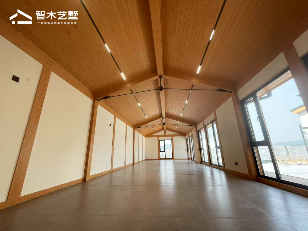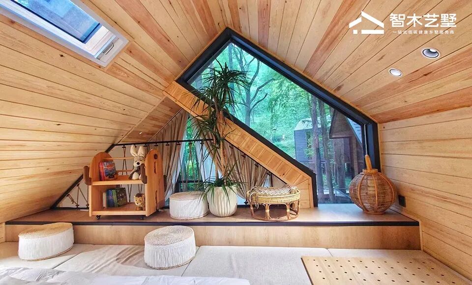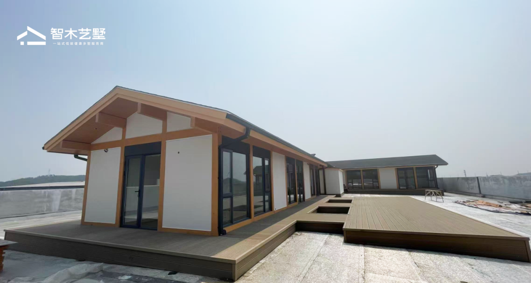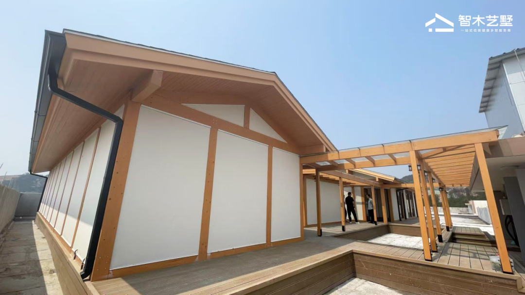 智木艺墅示范性美学木屋,凭借其轻盈的装配式木结构与模块化设计,能够灵活适配各类屋顶条件,现场组装便捷,施工周期短,极大降低了改造难度与对建筑主体的影响。