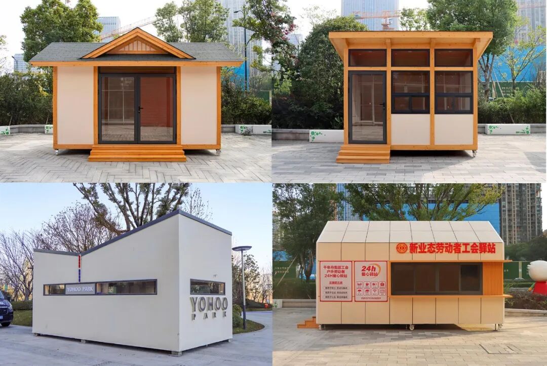 △园区工会驿站智木艺墅示范性木屋都以高度模块化、可迁移的形态,深度融合多样场景,重塑空间与生活的连接。