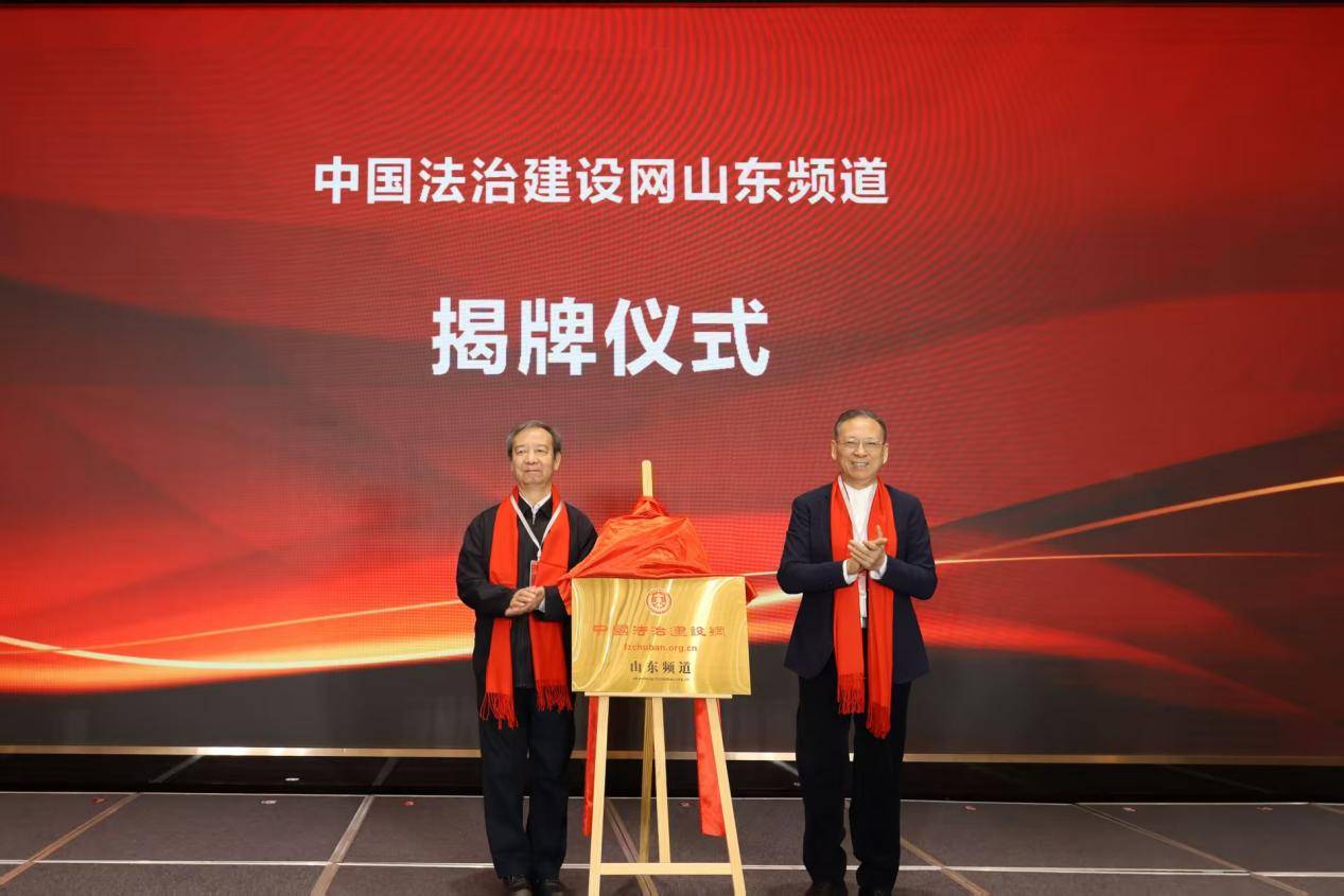 活动现场,在全体与会嘉宾的共同见证下,江必新副院长与韩亨林副部长一同为中国法治建设网山东频道揭牌。当红色帷幕徐徐拉开,金色牌匾在灯光下熠熠生辉,这一刻不仅标志着山东法治宣传迎来新的重要阵地,更象征着法治建设的薪火在这里传承延续。揭牌仪式后,山东频道又与山东财经大学法学院、鲁东大学法学院等多所高校法学院签署战略合作协议,标志着法治宣传的共建机制正式落地启航,将为齐鲁大地的法治文化建设注入源源不断的专业力量。
