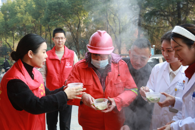 “香溢”志愿者叶伟芳已经盛好一碗饺子等候在此,见她进门便迎上前递过:“阿姨,快尝尝,猪肉芹菜馅的,趁热吃暖和!”蒸腾的热气裹着香味散开,瞬间拂去了她周身的寒意。张宇接过饺子连声道谢:“这饺子味道真好,吃在嘴里暖烘烘的,心里也跟着暖和。”