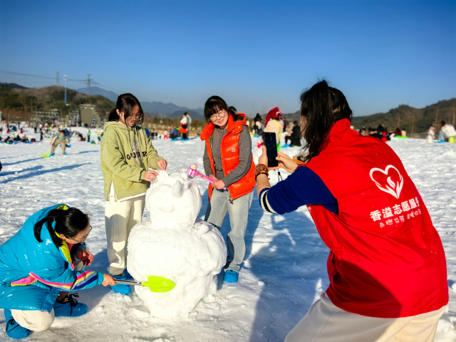 元旦假期,临安“天目未来谷”度假乐园里欢声如潮、游人如织。临安区烟草专卖局“香溢”志愿者穿梭其中,化身温暖的向导与美好的记录者。
