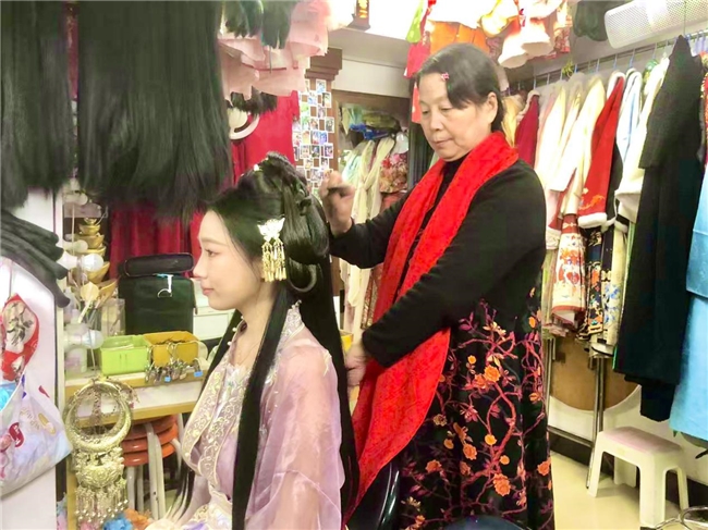 图为钱大姐为游客古风妆造