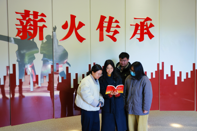 参观结束后,青年们移步至纪念馆附属的“红色讲堂”,窗外冬意仍浓,室内却因思想的聚拢而格外明亮温暖。活动的第二个环节——共读《党的二十届四中全会〈建议〉学习辅导百问》正式开始。