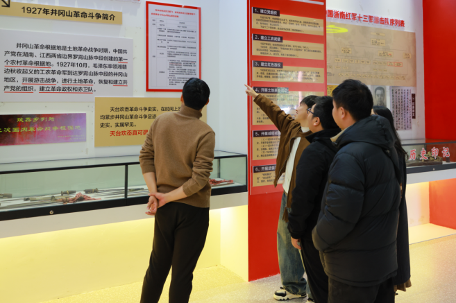 “1928年4月26日,天台县第一次党员宣誓大会在此召开,为浙东革命火种的延续播下了关键火苗。”随着讲解员的叙述,青年们驻足于泛黄的电报手稿前。