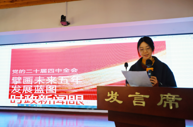 党务管理员陈岚星首先作了简短导读。她指出,党的二十届四中全会就推进中国式现代化、深化各领域改革作出新的战略部署,《建议》是指导今后一个时期工作的纲领性文件。结合行业实际,青年员工作为生力军,必须深入理解其中蕴含的立场、观点、方法。